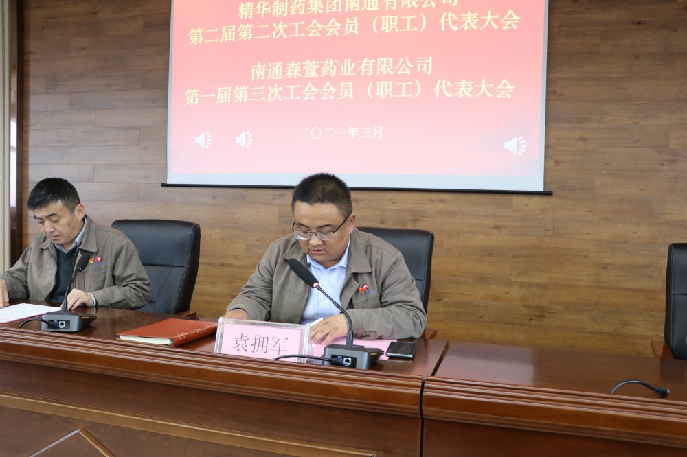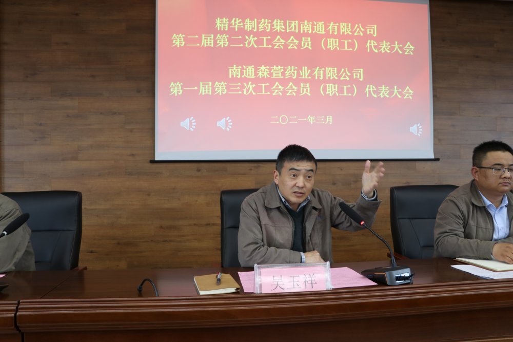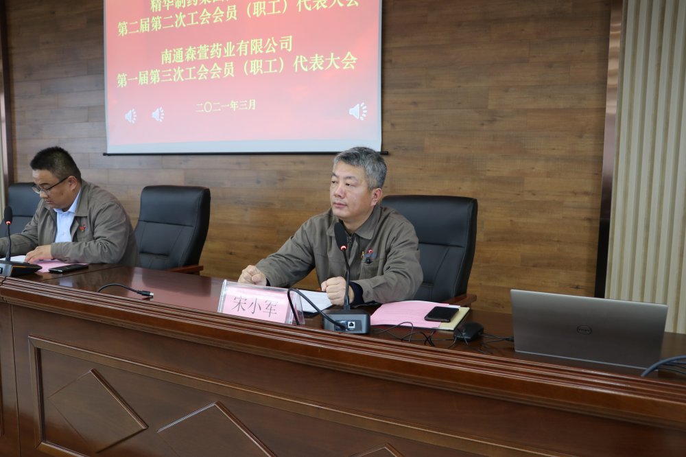 2021年3月19日下午,尊龙凯时制药集团南通有限公司第二届第二次工会职工(会员)代表大会和南通森萱药业有限公司一届三次职工(会员)代表大会在公司如期举行。集团公司常务副总裁、江苏森萱董事长、原料药党总支书记吴玉祥、江苏森萱总经理袁拥军出席会议。