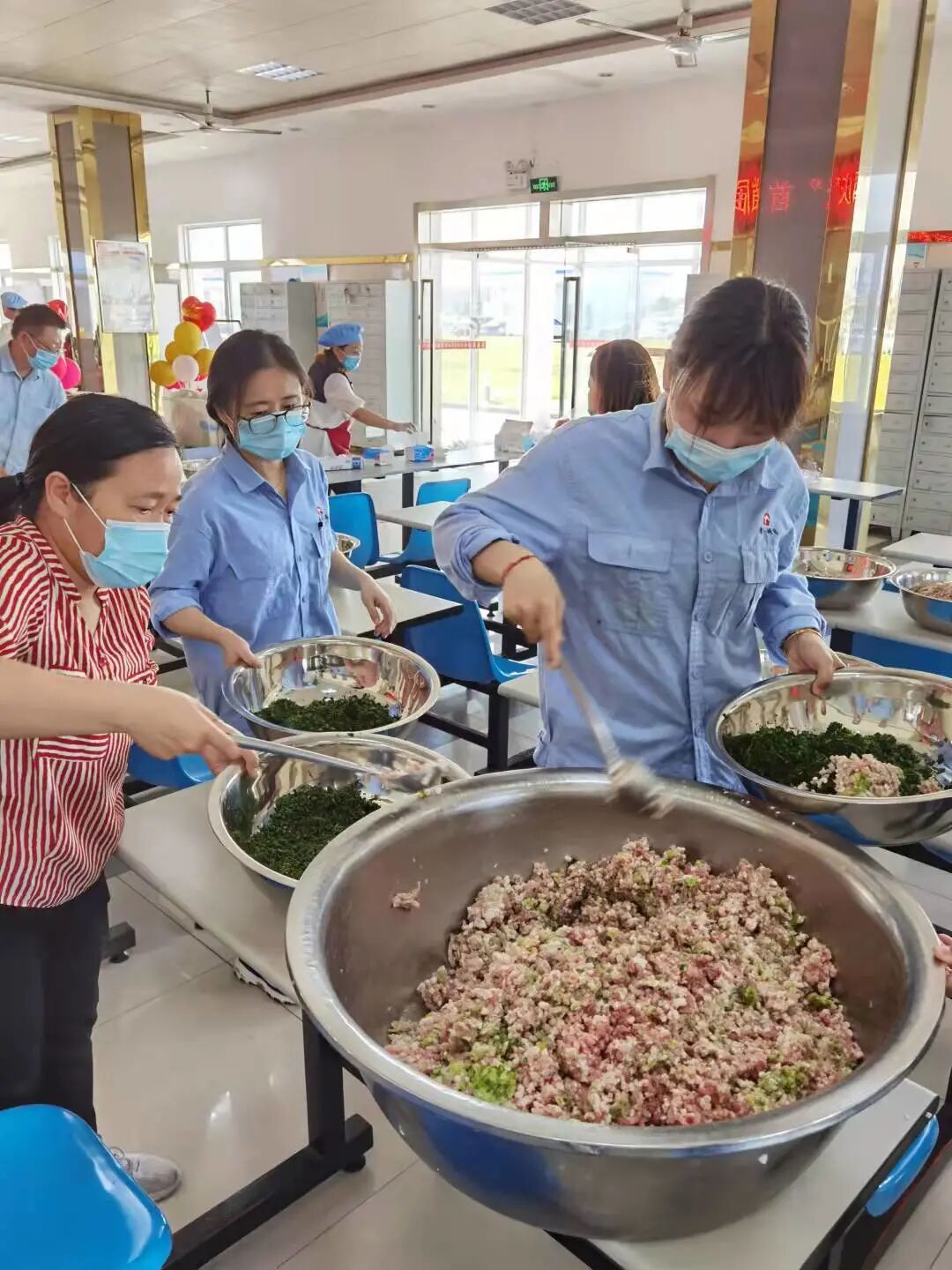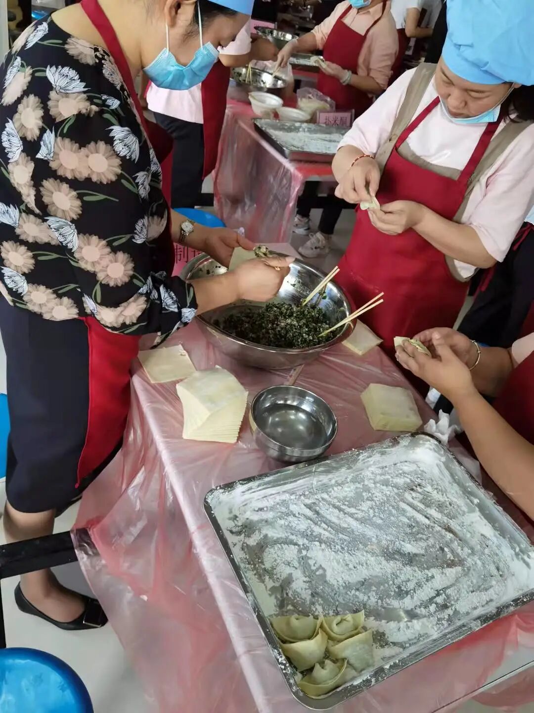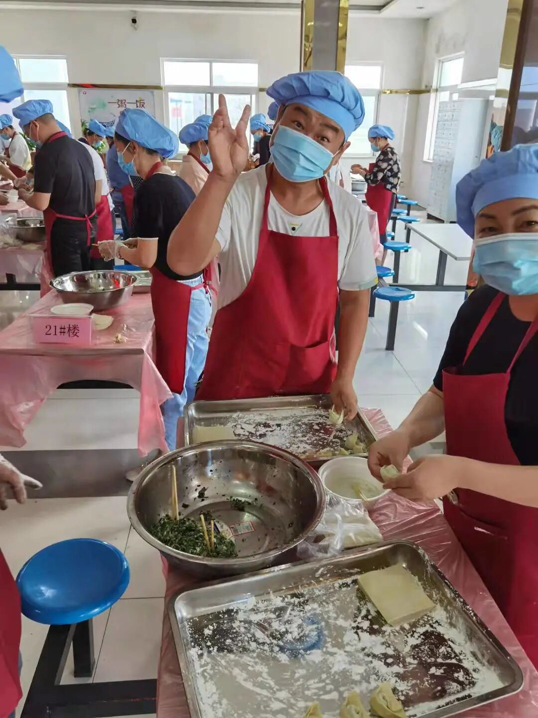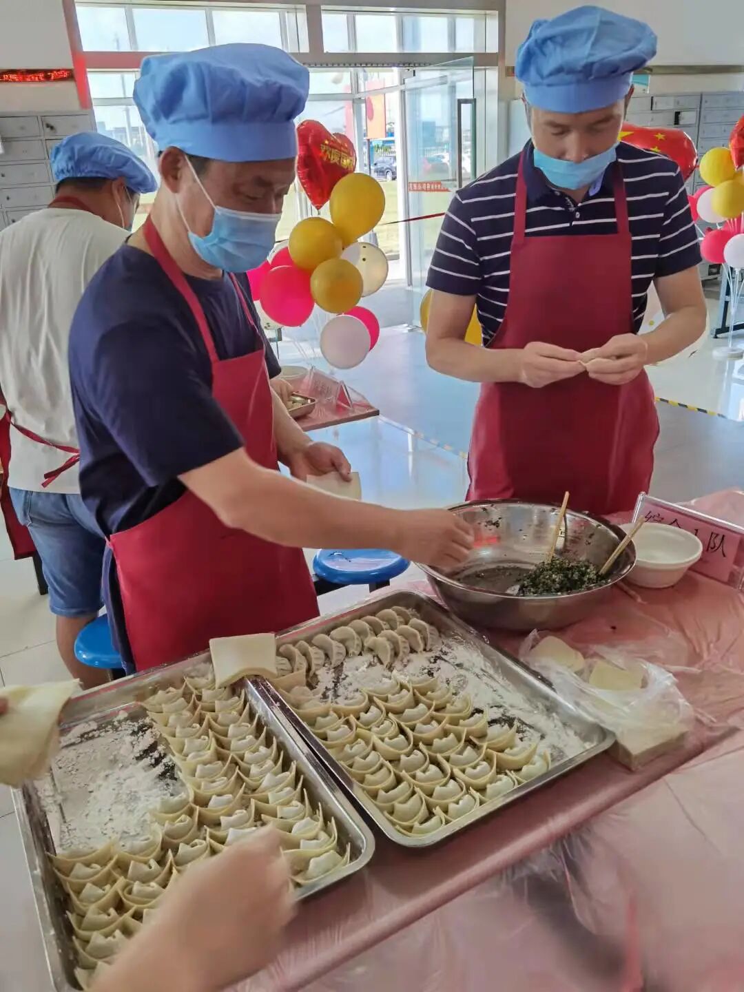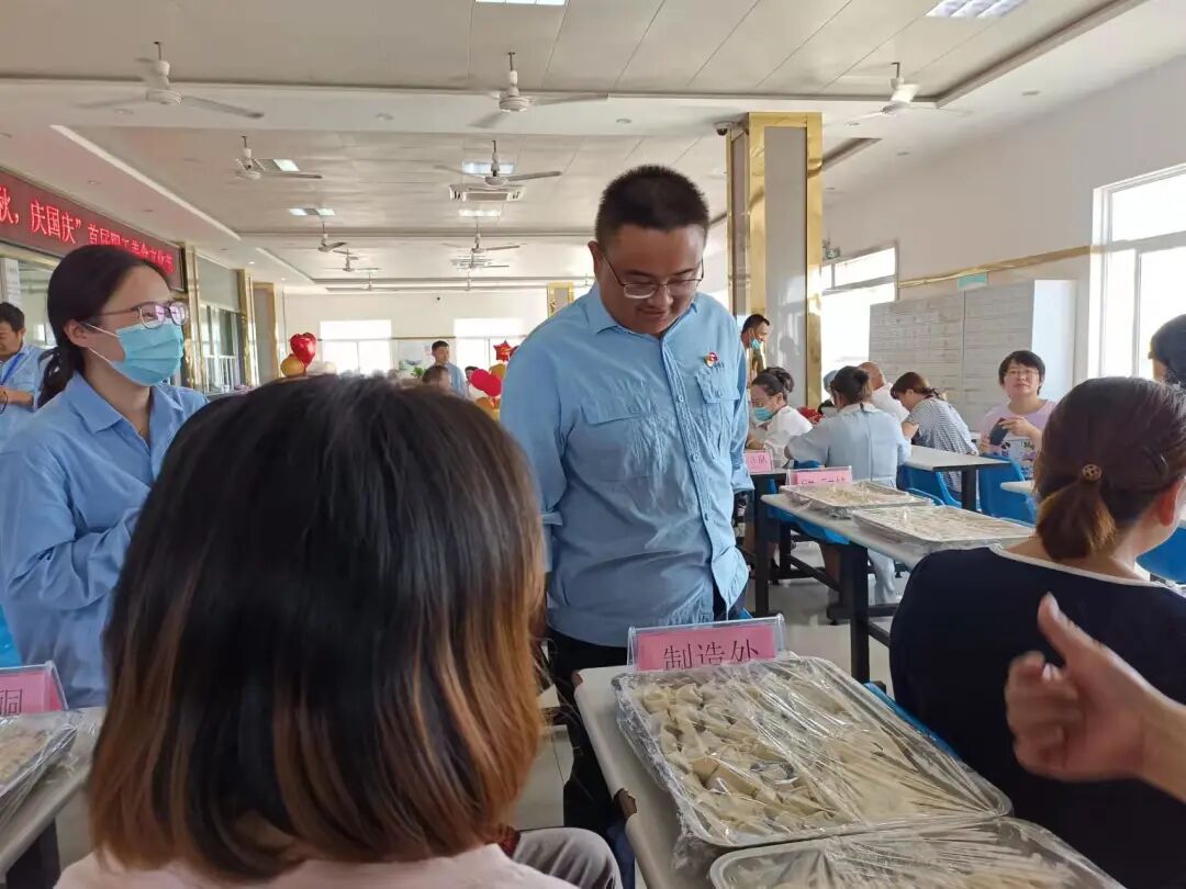 一早上,公司员工餐厅张灯结彩、热闹非凡,活动在大家的期盼中拉开序幕。首先由公司工会副主席宋小军同志向全体参赛人员宣讲比赛规则,一番讲解后,大家都热情满满、跃跃欲试。本次活动一共有16只参赛小组参加,比赛选手从生产一线的普通员工到研发部门的科研博士,共计50余人。赛程中,大家积极遵守纪律,服从裁判指挥,同心协力,这一刻,给我们展示出的是团体的力量,大家队内分工合作,和馅的和馅,包水饺的包水饺,队内团结协作,队伍之间却是激烈竞争,每个队伍都有自己绝密的水饺手法,在大家的紧密配合下,各式各样的水饺一盘盘的出现在了大家眼前。