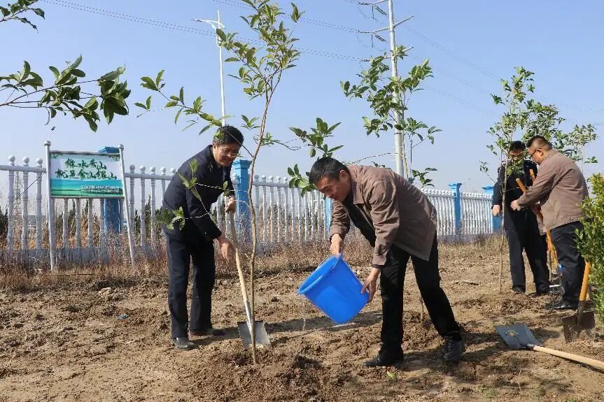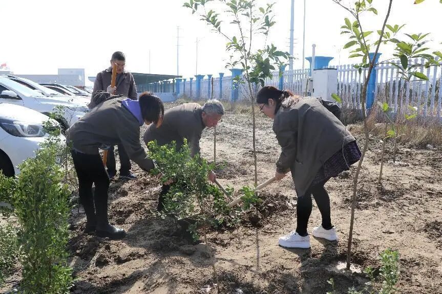 春风催新绿,植树正当时。植树活动现场,大家三两一组,分工协作,铲土挖坑、放苗回填、提水灌溉,配合默契,在公司办公区空地内合力精心栽下一棵棵树苗。为确保种下的树苗能够茁壮成长,党员志愿者们还将对每棵树苗逐一进行挂牌认养,并将这片种植区作为税企共建添新绿的示范区,在红色纪念牌的陪衬下,焕发出勃勃生机与活力。