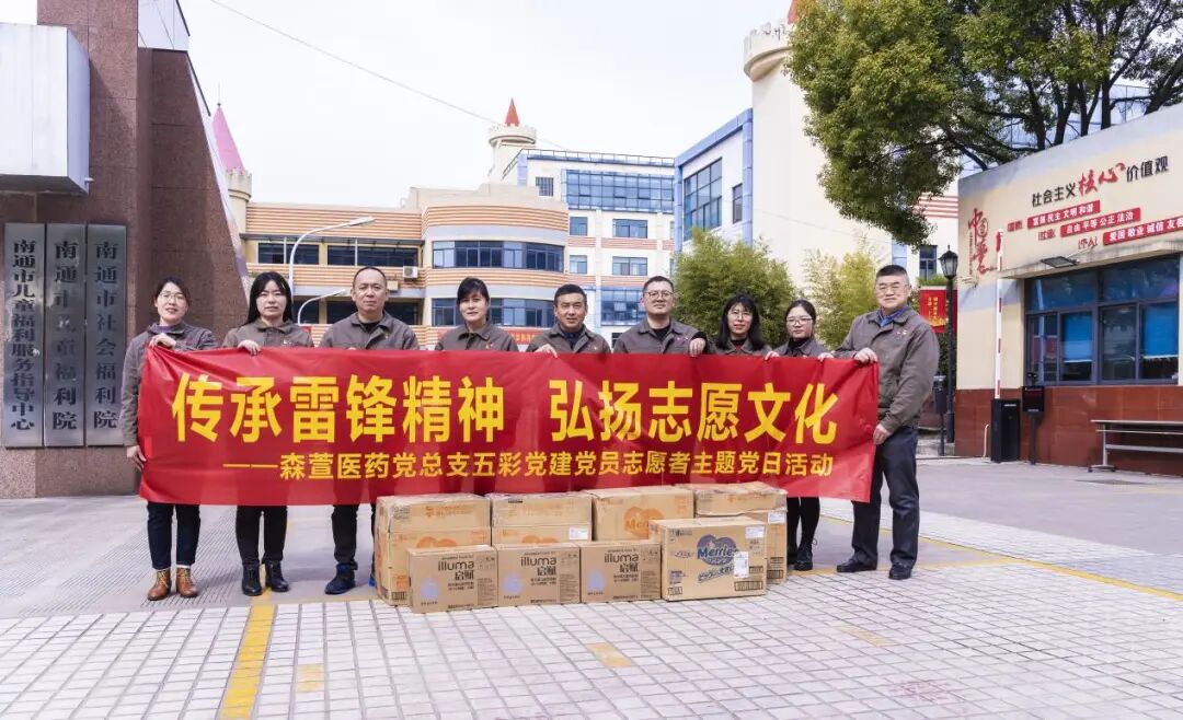 3月3日下午,尊龙凯时制药集团森萱医药党总支书记吴玉祥和委员袁拥军带队下,带领一批党员志愿者分别去南通社会福利院和如东县洋口镇社会福利院开展五彩党建主题党日活动,看望了福利院孤寡老人和孤残儿童,并为他们送去一批慰问品,包括奶粉、尿不湿、牛奶等。通过此次温暖行动,表达党总支的爱心和社会关爱。