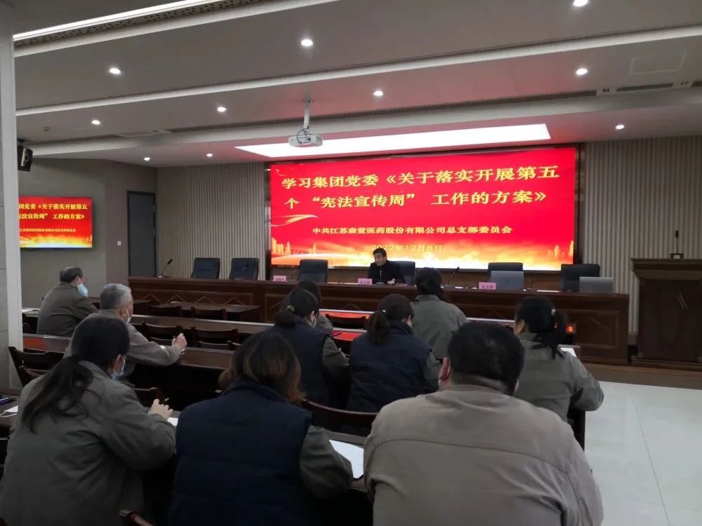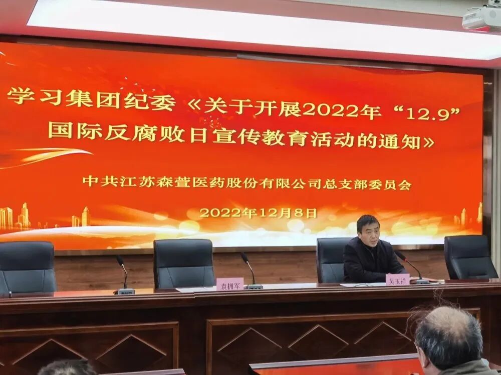 2022年12月8日,中共江苏森萱医药股份有限公司总支部委员会在南通公司控制楼三楼会议室 ,开展了“129”国际防腐倡廉和宪法宣传周主题党课活动,公司全体党员和主管以上管理人员参加了活动。